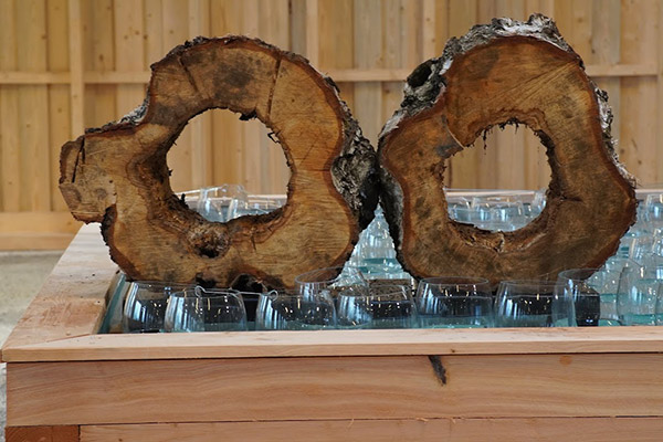 Zwei Scheiben eines Birkenstammes verkörpern Eheringe -