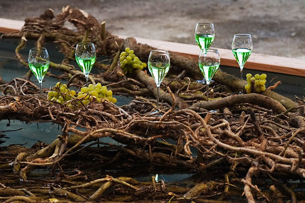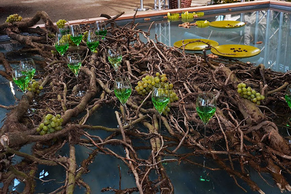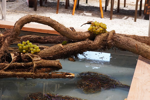 Ein alt/verwachsenes Efeugeflecht trägt die Basis der Installation.